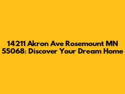 Hey guys! Are you looking for detailed information about the property located at 14211 Akron Ave, Rosemount, MN 55068? Well, you've come to the right place! This article dives deep into everything you need to know about this specific address, from its location and neighborhood to potential property details, market trends, and how to find even more information. Whether you're a potential buyer, seller, or simply curious about this Rosemount address, we've got you covered. Let’s explore what makes this location special and how you can uncover all the juicy details. Imagine settling into a cozy home in a vibrant community. Picture yourself enjoying the peace and quiet of a well-maintained neighborhood while still being close to all the amenities you need. That's the promise of Rosemount, and 14211 Akron Ave could be your gateway to this amazing lifestyle. The real estate market can be a bit of a maze, but don't worry, we're here to guide you through. From understanding property values to exploring local schools and parks, we'll provide you with the resources you need to make informed decisions. So, grab a cup of coffee, settle in, and let's get started on this exciting journey of discovery! Rosemount offers a unique blend of suburban charm and urban convenience. With its excellent schools, numerous parks, and thriving local businesses, it's no wonder why so many people are drawn to this vibrant community. And 14211 Akron Ave is perfectly situated to take advantage of everything Rosemount has to offer. So, are you ready to find out more? Let's dive in and explore the possibilities!