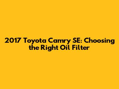 Hey guys! Let's dive into something crucial for your 2017 Toyota Camry SE: the oil filter. Maintaining your car's oil and filter is super important for keeping everything running smoothly. Today, we’re focusing on picking the perfect oil filter for your Camry SE. We'll cover why it matters, what to look for, and give you some solid recommendations to keep your engine purring like a kitten.