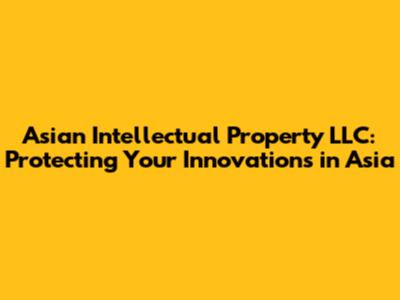 Intellectual property (IP) is a critical asset for businesses operating in today's global economy. For companies venturing into or already established in Asian markets, understanding and safeguarding their intellectual property is paramount. This is where specialized entities like Asian Intellectual Property LLC come into play. This article explores the role of Asian Intellectual Property LLC, the importance of IP protection in Asia, and key considerations for businesses seeking to protect their innovations.