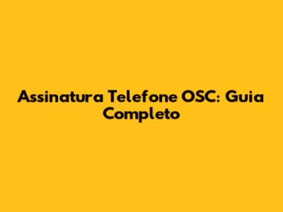 Assinatura Telefone OSC: Guia Completo