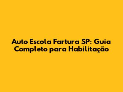 Auto Escola Fartura SP: Guia Completo Para Habilitação