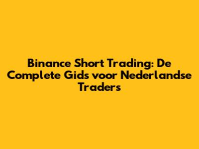 Binance Short Trading: De Complete Gids Voor Nederlandse Traders