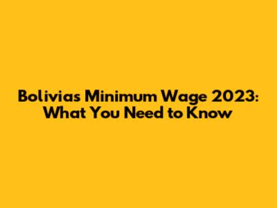 Bolivia's Minimum Wage 2023: What You Need To Know