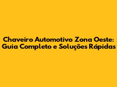 Chaveiro Automotivo Zona Oeste: Guia Completo E Soluções Rápidas