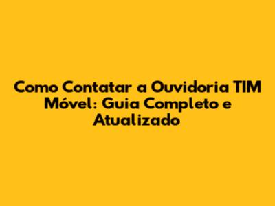 Como Contatar A Ouvidoria TIM Móvel: Guia Completo E Atualizado