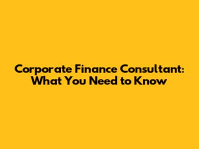Corporate Finance Consultant: What You Need To Know