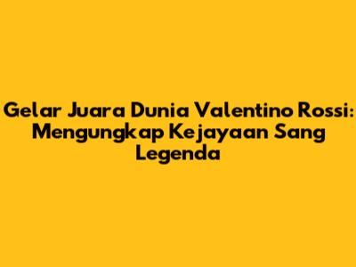 Valentino Rossi adalah contoh nyata dari dedikasi, kerja keras, dan bakat luar biasa. Ia adalah legenda MotoGP yang akan selalu dikenang oleh para penggemar balap motor di seluruh dunia. Gelar juara dunia yang diraihnya adalah bukti dari perjuangan dan pengorbanannya di dunia balap. The Doctor akan selalu menjadi bagian penting dari sejarah MotoGP.