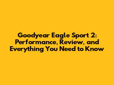 Goodyear Eagle Sport 2: Performance & Review