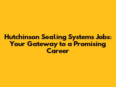 Hey everyone! Are you on the hunt for a rewarding career path? Maybe you're looking for a company that values innovation, offers growth opportunities, and is at the forefront of its industry. Well, if you're nodding your head, then you've got to check out Hutchinson Sealing Systems jobs! This article is all about helping you understand the company, explore potential job openings, and get you prepped to make the best impression. So, let’s dive in, guys!