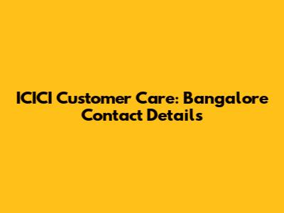 ICICI Customer Care: Bangalore Contact Details