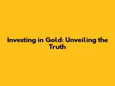 Investing In Gold: Unveiling The Truth