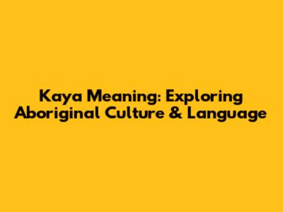 Kaya Meaning: Exploring Aboriginal Culture & Language