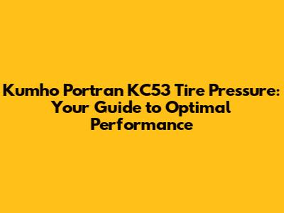 Kumho Portran KC53: Find The Perfect Tire Pressure