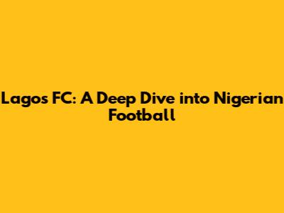 Hey sports fanatics! Ever heard of Lagos FC? If you're into Nigerian football, or just love a good underdog story, you're in the right place. We're diving deep into the world of Lagos FC, exploring everything from its history and players to its impact on the Nigerian football scene. Get ready to have your game face on because we're about to kick off!
