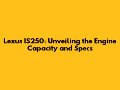Hey guys! Ever wondered about the engine capacity of the Lexus IS250? Or maybe you're curious about its overall specs? Well, you've landed in the right spot! We're diving deep into the heart of this luxury sedan to uncover everything you need to know. Understanding the engine and its capabilities is super important, whether you're considering buying one, already own one, or are just a car enthusiast. So, let's get started and explore the world of the Lexus IS250!
