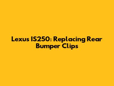 Replacing the rear bumper clips on your 2006 Lexus IS250 is a straightforward task that can save you money and keep your car looking its best. By following this guide and taking your time, you can confidently tackle this DIY project. Remember to use the right tools, be gentle, and double-check your work to ensure a secure and professional-looking result. Good luck, and happy driving!