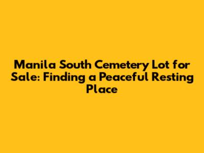 Finding a manila south cemetery lot for sale can be a complex process, but with careful research and planning, you can find a peaceful and dignified resting place for yourself or your loved ones. Remember to consider the cemetery's history, the types of lots available, the factors affecting the price, and the important considerations before buying. Good luck with your search!