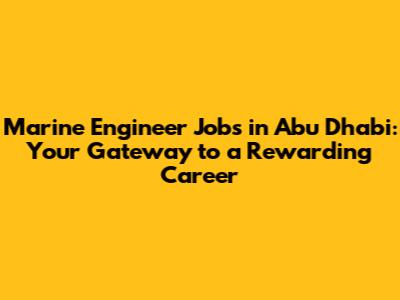 Marine Engineer Jobs In Abu Dhabi: Your Gateway To A Rewarding Career