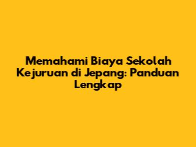 Biaya sekolah kejuruan di Jepang merupakan pertimbangan penting bagi siapa saja yang bermimpi menimba ilmu di negeri sakura. Guys, mempersiapkan diri secara finansial adalah kunci untuk mewujudkan impian studi di Jepang. Artikel ini akan membahas secara mendalam mengenai berbagai aspek biaya pendidikan vokasi di Jepang, mulai dari biaya sekolah itu sendiri, biaya hidup, hingga berbagai opsi beasiswa dan bantuan keuangan yang bisa kalian manfaatkan. Dengan pemahaman yang baik, kalian dapat menyusun rencana keuangan yang matang dan memaksimalkan peluang untuk meraih pendidikan berkualitas di Jepang.