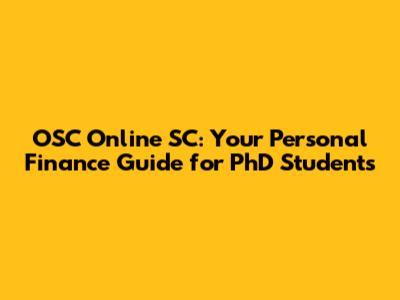 OSC Online SC: Your Personal Finance Guide For PhD Students