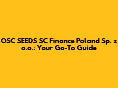 Hey guys! Ever heard of OSC SEEDS SC Finance Poland Sp. z o.o. and wondered what they're all about? Well, you've come to the right place. This guide will walk you through everything you need to know about this company, from its basic details to its significance in the finance world. So, let’s dive in!