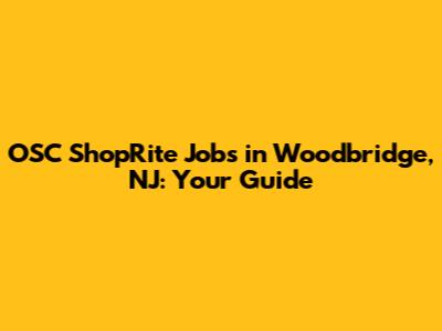 OSC ShopRite Jobs In Woodbridge, NJ: Your Guide