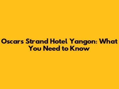 Oscars Strand Hotel Yangon: What You Need To Know