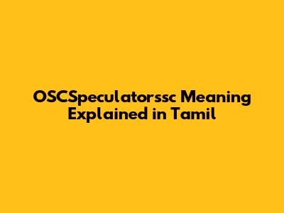 OSCSpeculatorssc Meaning Explained In Tamil