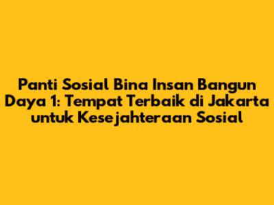 Panti Sosial Bina Insan Bangun Daya 1 merupakan salah satu panti sosial terbaik di Jakarta yang memberikan pelayanan dan rehabilitasi bagi individu dan keluarga yang membutuhkan. Dengan visi dan misi yang jelas, program dan layanan yang unggul, fasilitas dan sumber daya yang memadai, serta dampak positif yang signifikan bagi masyarakat, panti ini layak mendapatkan apresiasi dan dukungan dari semua pihak. Mari kita bersama-sama mendukung Panti Sosial Bina Insan Bangun Daya 1 dalam menjalankan misinya untuk menciptakan masyarakat Jakarta yang lebih sejahtera dan inklusif.