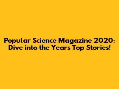 Popular Science Magazine 2020: Dive Into The Year's Top Stories!