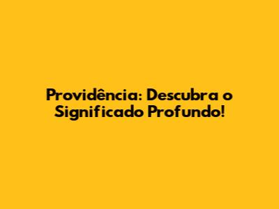 Providência: Descubra O Significado Profundo!