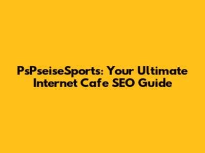 PsPseiseSports: Your Ultimate Internet Cafe SEO Guide