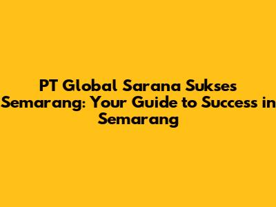 PT Global Sarana Sukses: Your Guide To Success In Semarang