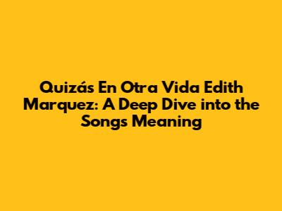 Quizás En Otra Vida: Edith Marquez's Song Meaning