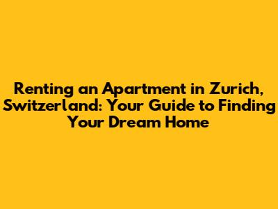 Rent Apartment In Zurich: A Guide To Finding Your Dream Home