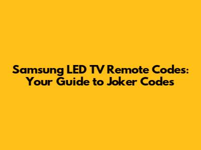 Samsung LED TV Remote Codes: Your Guide To Joker Codes