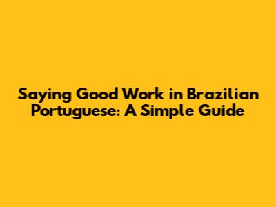 Saying Good Work In Brazilian Portuguese: A Simple Guide
