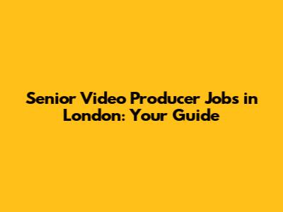 Senior Video Producer Jobs In London: Your Guide