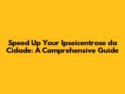 Speed Up Ipseicentrose Da Cidade: Tips And Tricks