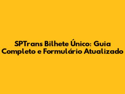 SPTrans Bilhete Único: Guia Completo E Formulário Atualizado
