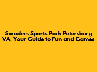 Hey guys! Are you looking for a place packed with fun, games, and excitement in Petersburg, Virginia? Look no further than Swaders Sports Park! This place is a total blast, offering a wide array of activities that cater to everyone, from thrill-seekers to those who prefer a more relaxed pace. Whether you're planning a family outing, a birthday party, or just a fun day with friends, Swaders has got you covered. Let’s dive into everything this amazing park has to offer and why it should be your next go-to destination for entertainment. Seriously, you won't regret checking it out!