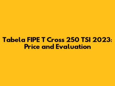 The Tabela FIPE T Cross 250 TSI 2023 is an essential tool for anyone looking to buy or sell this popular subcompact SUV. By understanding the Tabela FIPE value and considering the various factors that can influence the price, you can make an informed decision and get the best possible deal. Remember to do your research, inspect the vehicle thoroughly, and negotiate wisely.