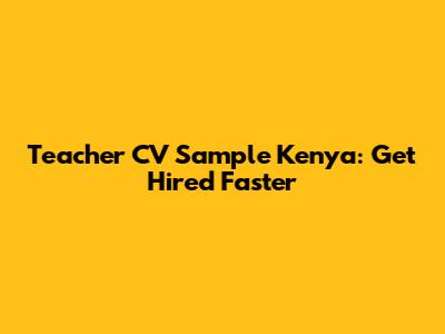 Teacher CV Sample Kenya: Get Hired Faster