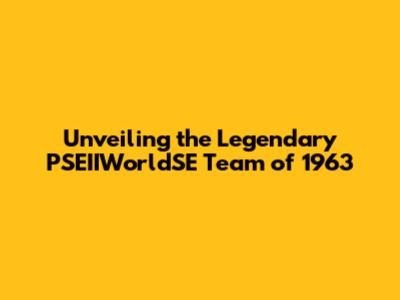 Unveiling The Legendary PSEIIWorldSE Team Of 1963