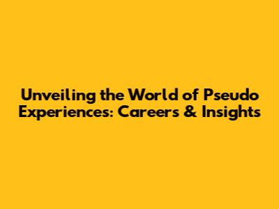 Unveiling The World Of Pseudo Experiences: Careers & Insights