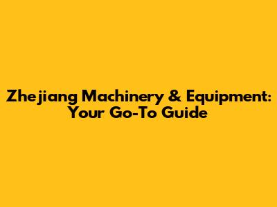 Zhejiang Machinery & Equipment: Your Go-To Guide